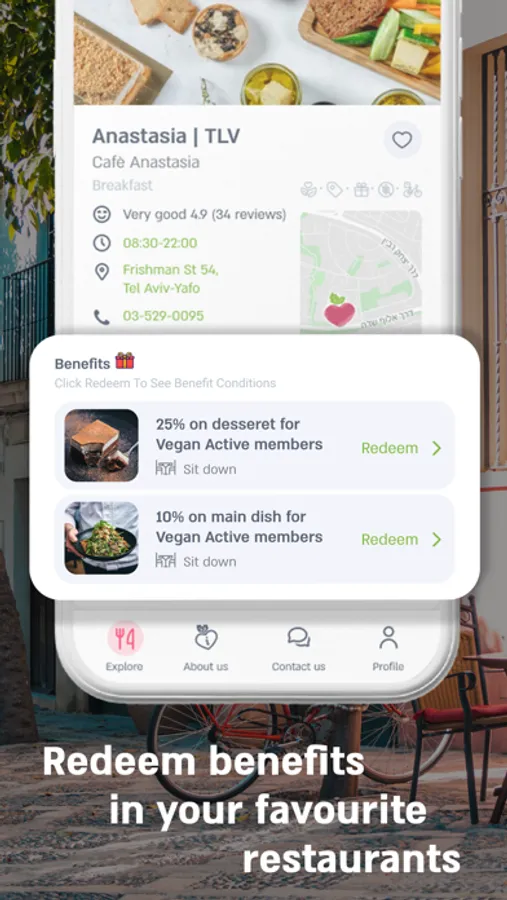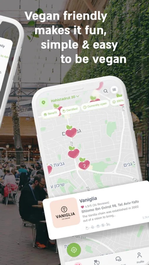 The app features thousands of restaurants, displays their location, all the vegan options available, customer reviews, delivery links and exclusive benefits just for you!