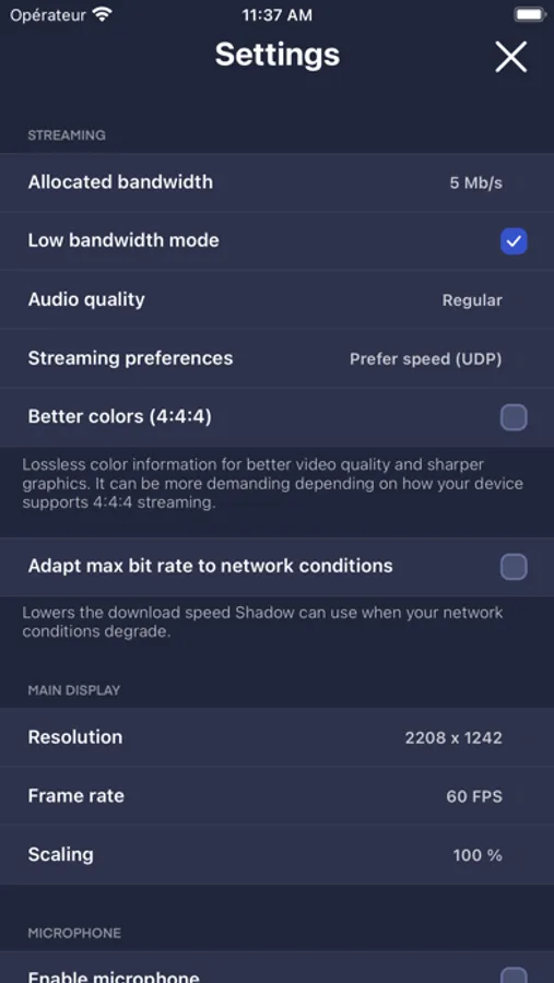 • Shadow supports native resolutions and scales to your device automatically.