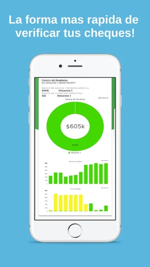 Sacando una foto al cheque, ingresando una imagen de tu galería o ingresando el CUIT/L a mano obtendrás un informe detallado y claro de su situación.