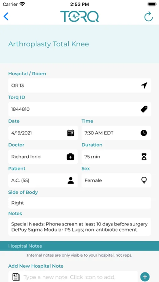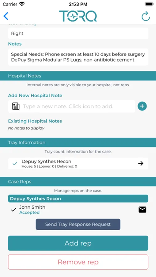 Torq Hospital Mobile (formerly Rep Coordinator) allows hospitals to coordinate medical device rep attendance in the operating room, see the case schedule, and view expected house and loaner trays for a case.
