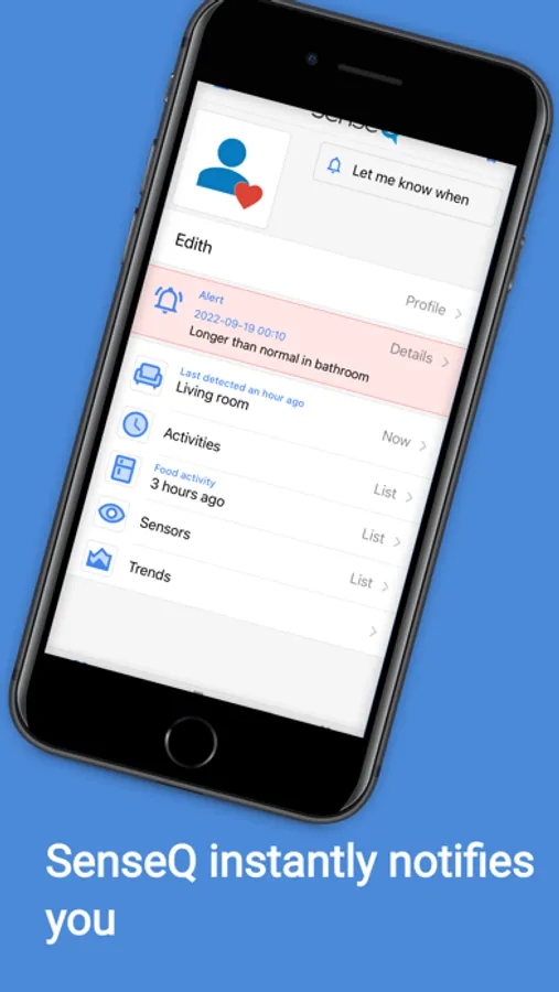 SenseQ does that for you. It watches, monitors and assesses 24/7 giving you peace of mind knowing that your loved one is under a watchful eye. If and when a need or emergency arises, SenseQ instantly alerts you or a caregiver.