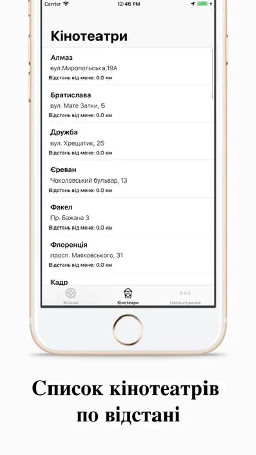 Читай опис, дивись трейлери, додавай фільми в список улюблених та отримуй сповіщення коли виходять фільми.