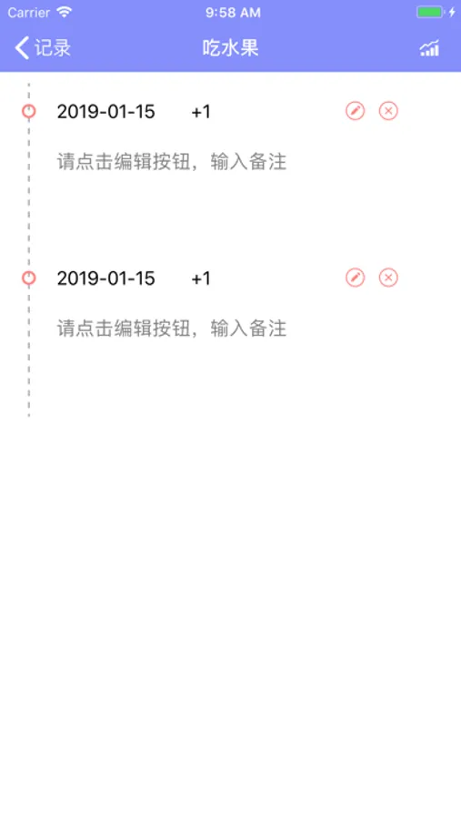 浪迹流水账是一款记录生活的工具,把一件事、一个目标创建为一个按钮,每次点一下,就记录一次。合理的使用,可以提高工作效率,可以记录生活点滴,可以作为提醒事项,可以记账,可以作为备忘录,更多功能需要您自己发掘,根据您自身的需求,浪迹总会满足。