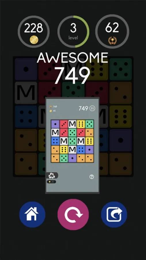Synthesize the M tile as much as possible and eliminate it, constantly challenge yourself to get high scores, COME ON!