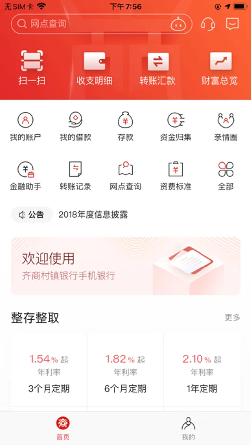 3、公共服务:银行公告、优惠快讯、理财咨询、资费标准、网点查询、安全提示、关于我们、意见反馈。