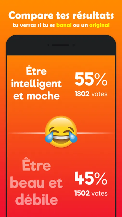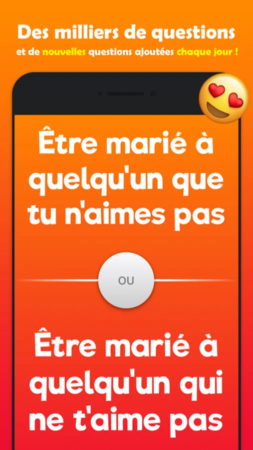 Des questions les plus cocasses aux vrais dilemmes moraux, en passant par les duels en images, apprends à te connaître et à connaitre tes potes à travers des choix impossibles.