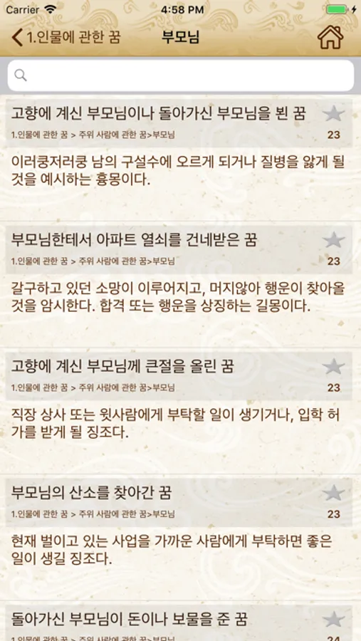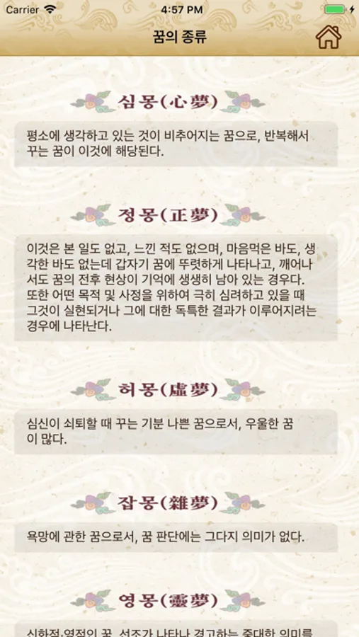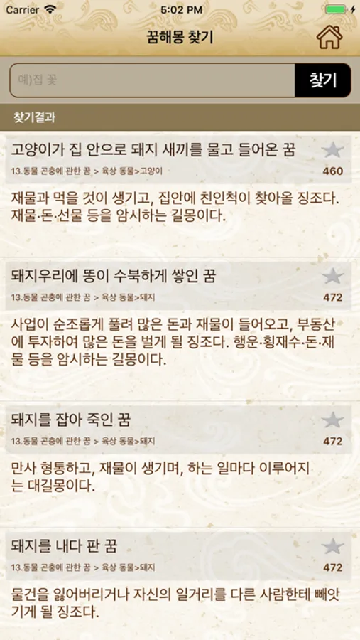 - 꿈해몽 찾기 - 829페이지의 방대한 양의 꿈해몽을 쉽게 찾아줍니다.