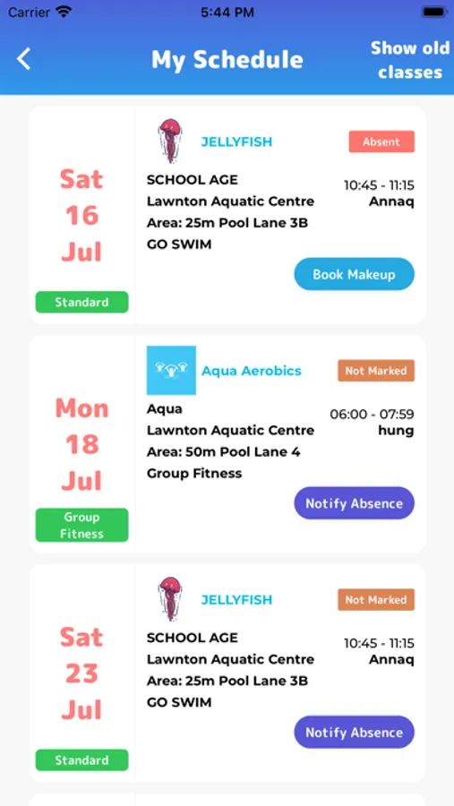 • View upcoming classes