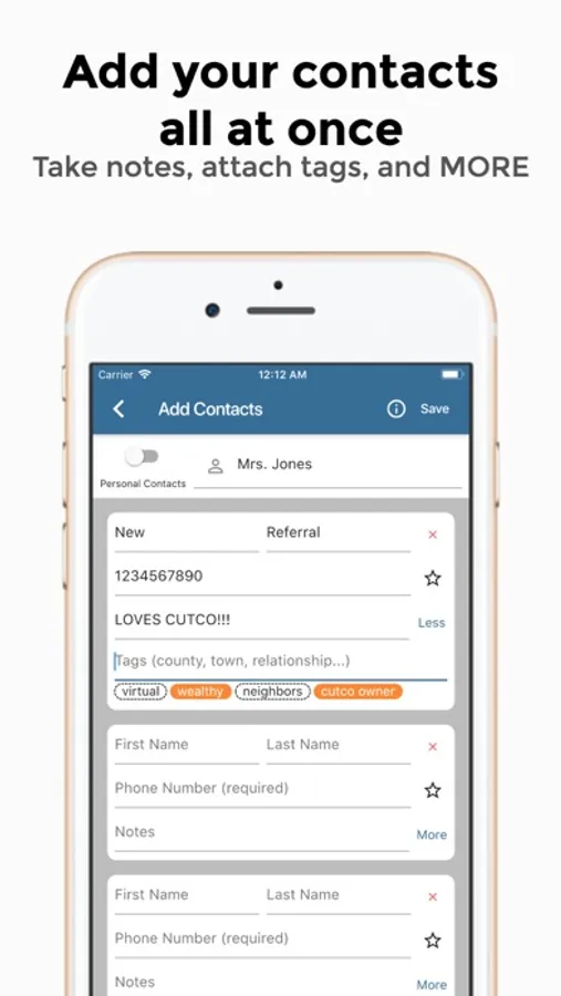 - Use tags and notes to easily organize your contacts