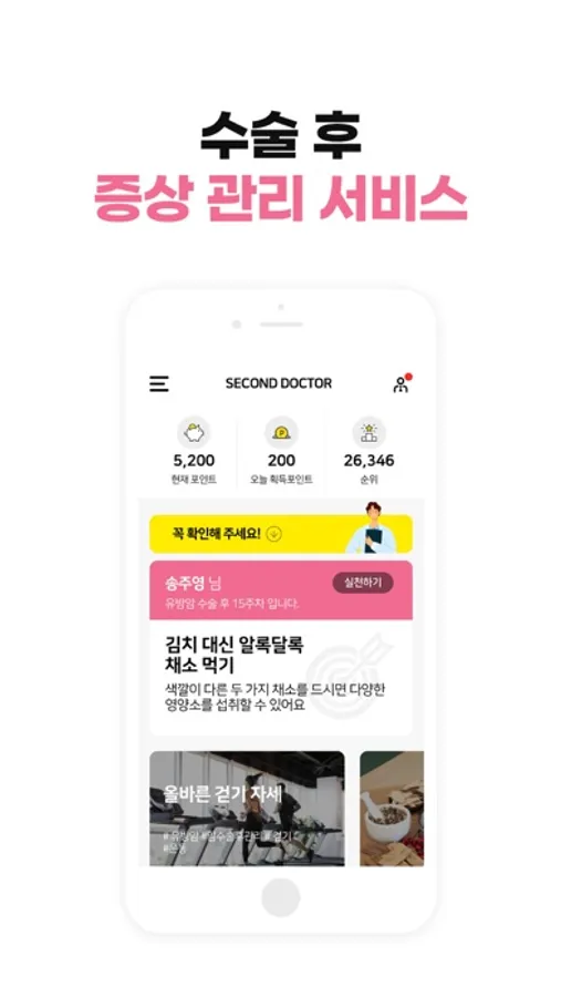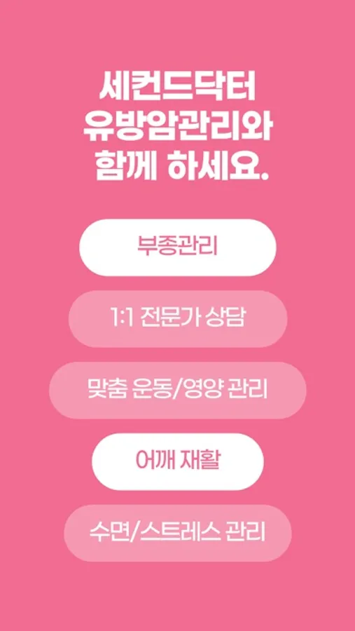 유방암 by 세컨드 닥터는 암 수술 후 빠른 회복과 삶의 질 향상을 필요로 하는 분들을 위해 만들어진 개인 맞춤형 전문 건강관리 솔루션입니다.