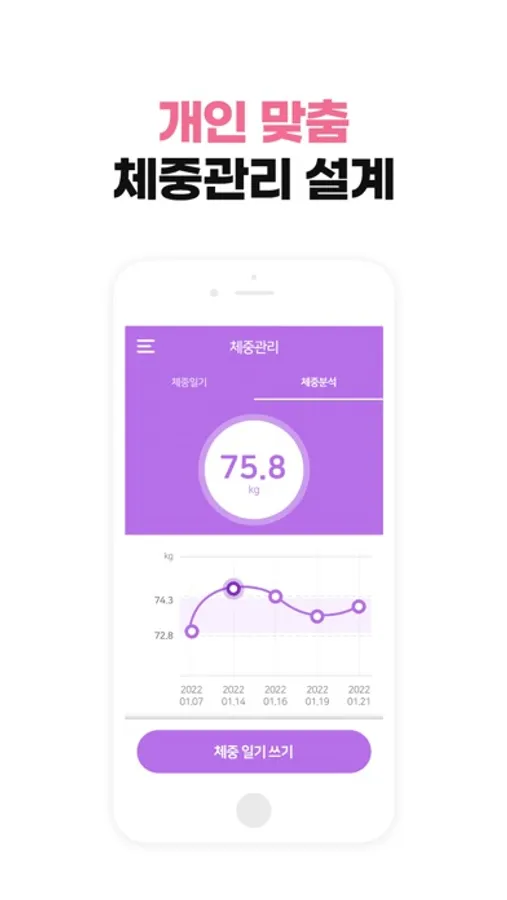 • 체중관리: 집접 또는 블루투스 체중계를 통해 체중을 기록할 수 있습니다.