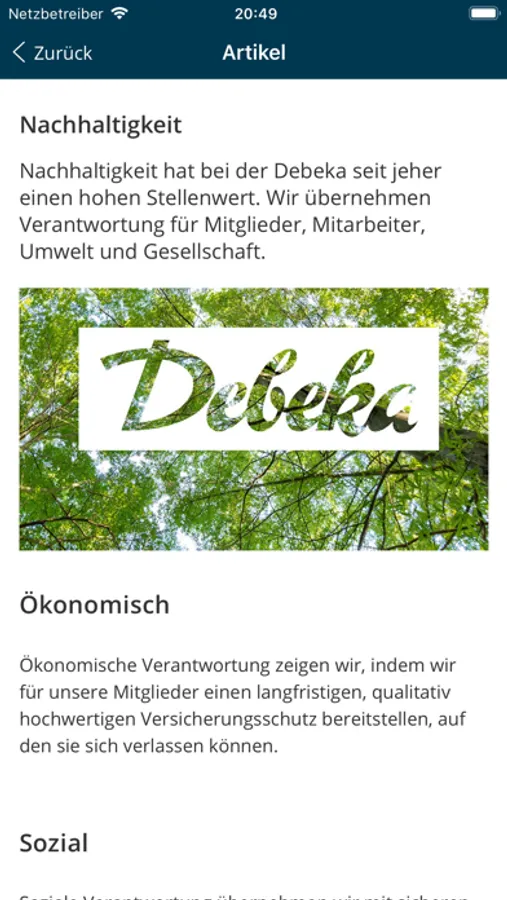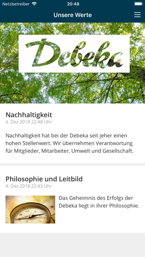 Die Debeka DNApp liefert schnell und kompakt interessante Neuigkeiten und Informationen rund um das Unternehmen. Außerdem finden Sie hier aktuelle Pressemeldungen sowie Beiträge aus den verschiedensten sozialen Netzwerken direkt auf Ihrem Smartphone.
