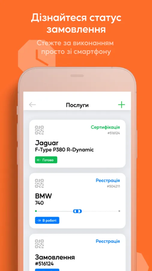 Обирайте авто в каталозі, стежте за виконанням замовлень просто зі смартфону.