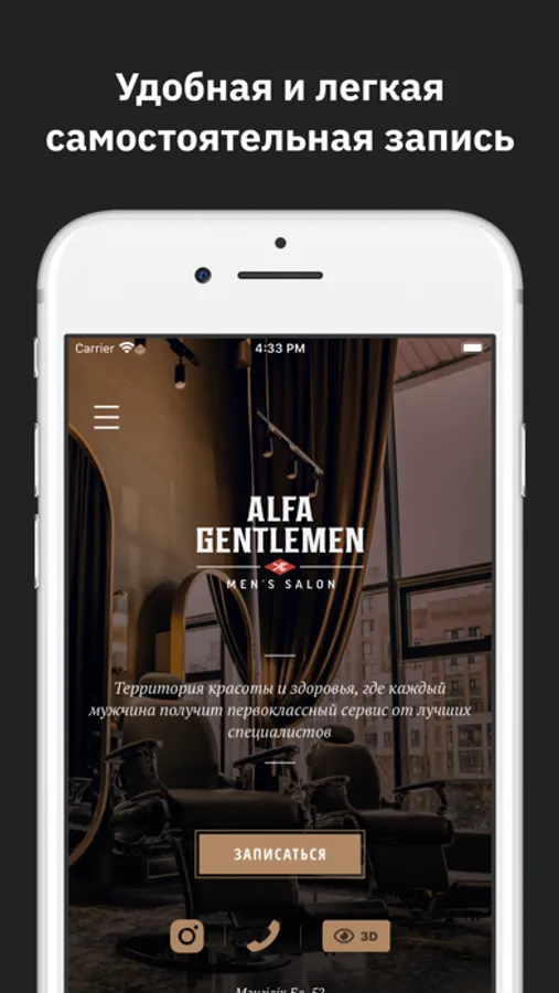 Приложение Alfa Gentlemen — удобный, быстрый и легкий способ записаться в салон. Смотрите полный список услуг и цены, изучите профайлы мастеров, подберите удобное время визита к своему мастеру и запишитесь самостоятельно в любое время в приложении.