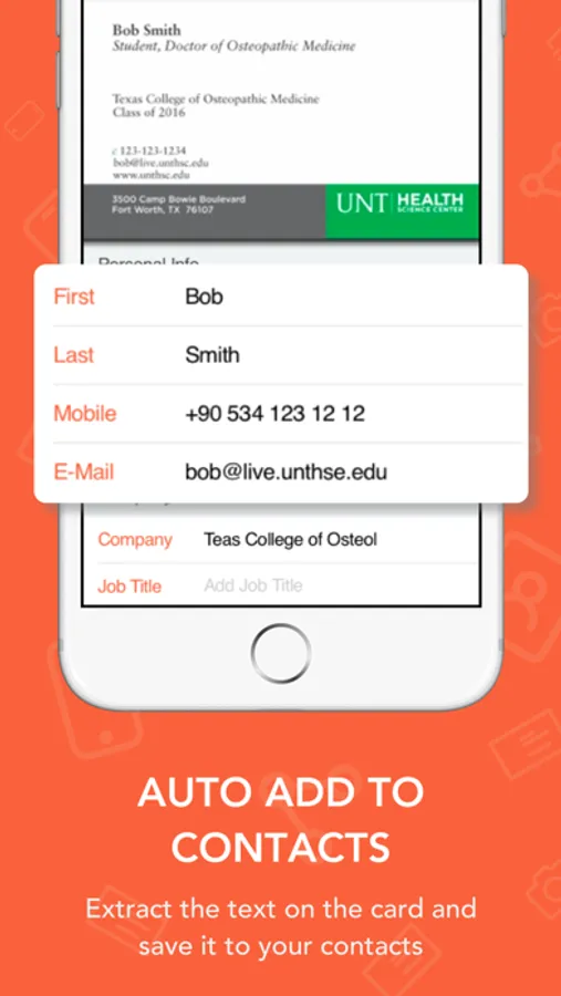 - AUTOMATICALLY add to contact list: When you scan the business card, the app will automatically add the contact to your iPhone and iCloud contacts
