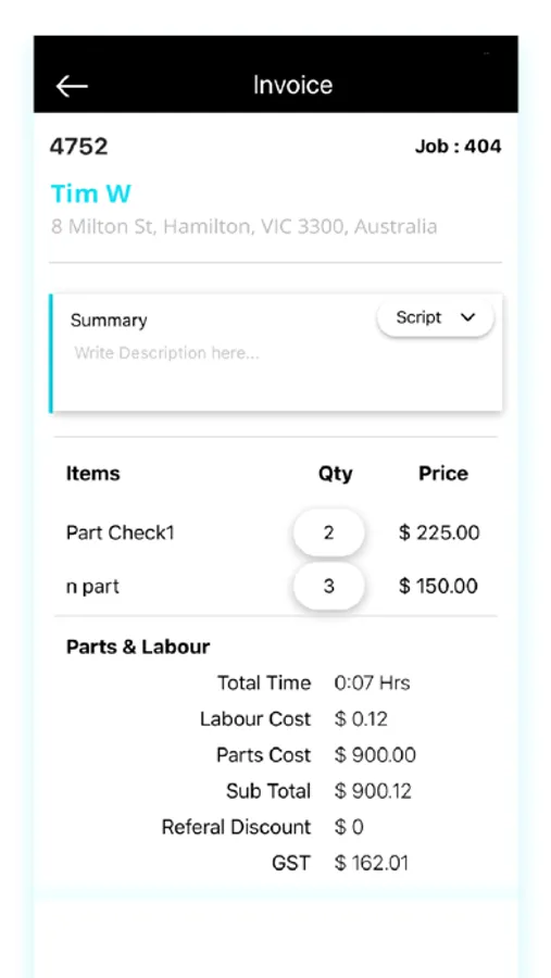 Mobile technicians can run their entire business from the palm of their hand, creating a booking to raising an invoice, taking payments and completing inspection reports. In-house technician can manage their time, materials and add attachments plus so much more directly from the app.