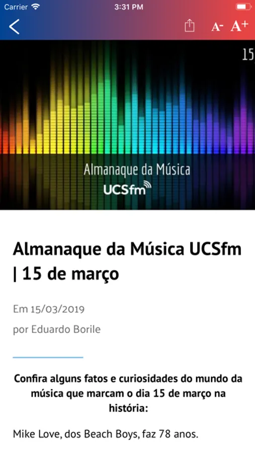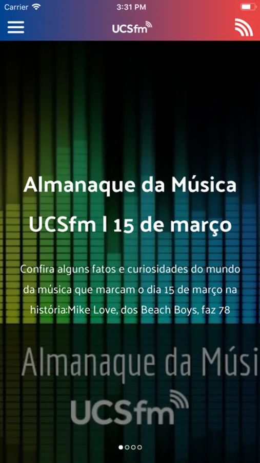 A programacao da UCSFM e elaborada tendo como base o publico adulto jovem – um ouvinte informado, antenado para as novas tendencias e com potencial de consumo. Para tal publico, musica, alem de entretenimento, e um universo de conhecimento e aprendizagem. Esse ouvinte possui uma caracteristica que o diferencia dos demais, pois busca aprofundar-se na musica que ouve e conhecer o artista que a interpreta.