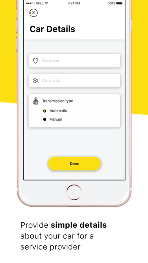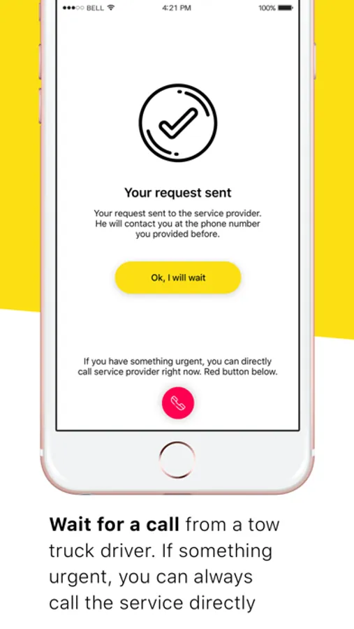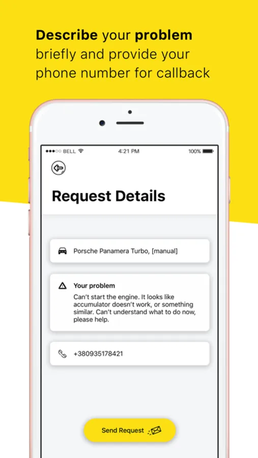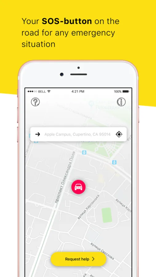 Intuitive design. Request help just in 3 steps: location, car, message.