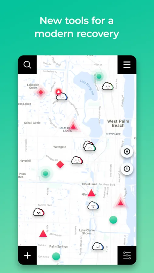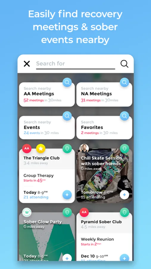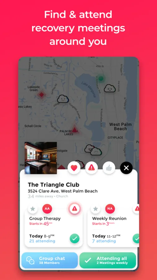 Map: Request rides to 12-step meetings, find other sober people, host events, and earn points