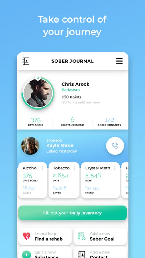 Sober Journal: Set goals, daily inventory, sobriety calculator, add sober contacts and view statistics on your recovery