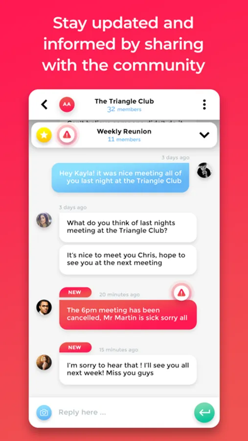Chat: Communicate in meeting groups, with friends, or your past treatment providers.