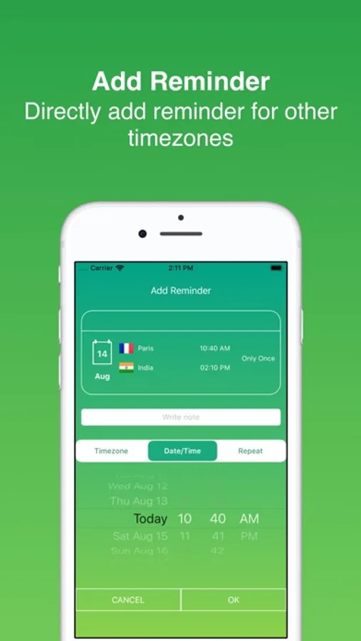 You can set a reminder directly at other timezone and app will automatically manage that for your local time. Your usual reminders work the way they should, you can set them for your tasks