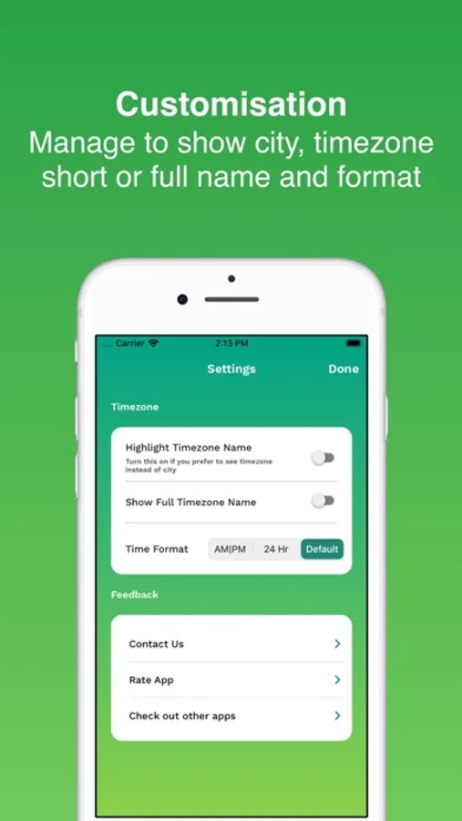 You can adjust the time in 12 or 24 hours format. To keep it easy and sync with your settings, you can choose the "Default" option and the app will update the format according to app settings.