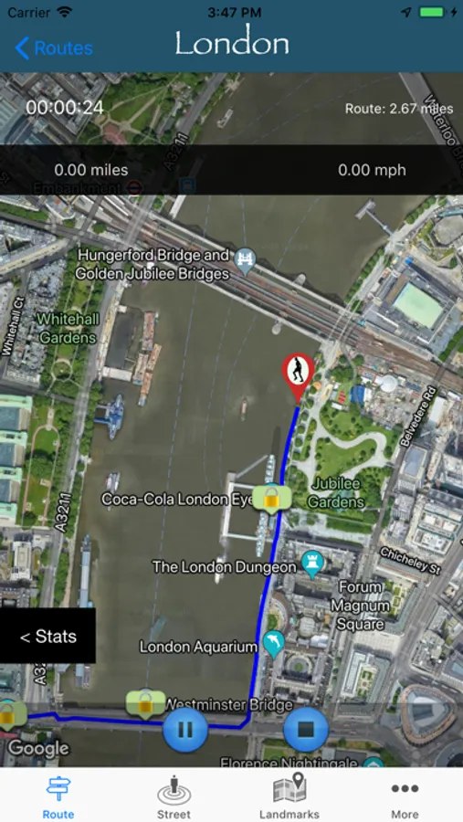 - Ability to see street view of your virtual route that updates in real-time as you walk to make you feel like you are there. You can look around the street view using standard gestures.