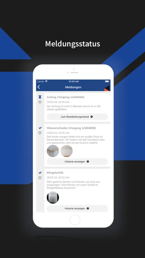 Melden Sie zu behebende Schadensfälle und andere Anliegen schnell und bequem. Auch hier werden Sie jederzeit über den Stand der Beauftragung von Handwerkern informiert.