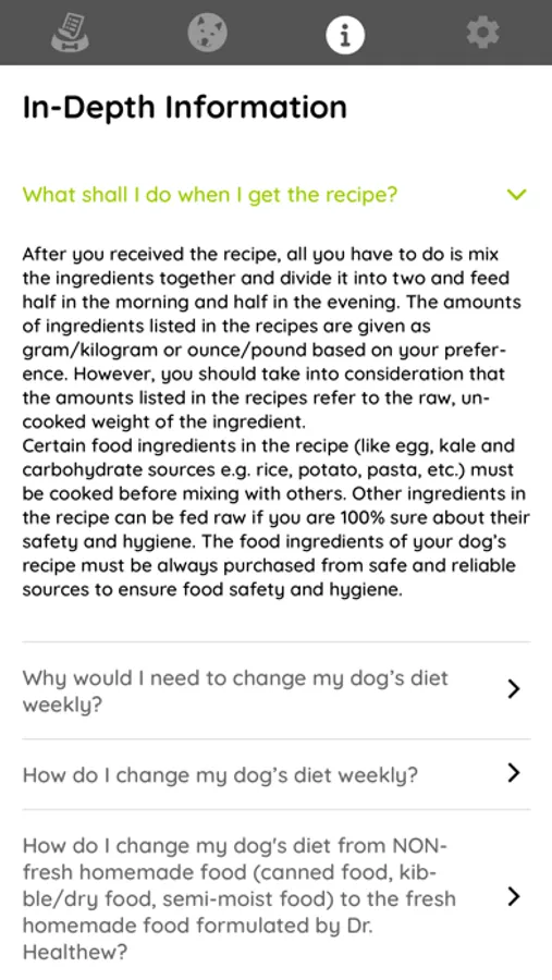 Dr. Healthew formulates individually balanced fresh dog food recipes. Yes, you read it right; the App creates INDIVIDUALLY BALANCED FOOD RECIPES for each DOG. All dog food recipes created by Dr. Healthew are formulated to meet or exceed AAFCO, FEDIAF and NRC nutritional standards.