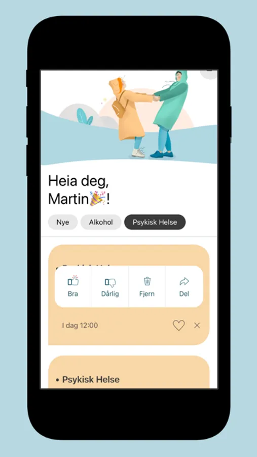 Det er krevende å endre livsstil og lykkes med sunnere hverdagsvaner. Ikke gjør det vanskeligere enn nødvendig. Heia meg er et enkelt verktøy i lomma som gjør det lettere å komme i gang og holde ut lenge nok til at det går mer av seg selv. Heia meg lar deg velge hva du vil ta tak i – og minner deg hver dag på hva du har startet på.