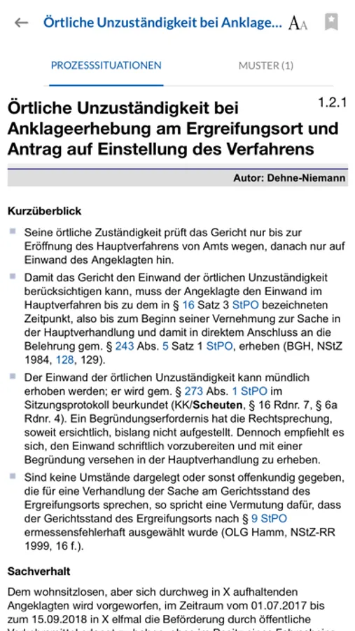 Die App „ Der Strafprozess“ bietet dem Strafverteidiger eine schnelle und unmittelbare Unterstützung für die im Strafprozess häufig unvorhersehbar und dynamisch verlaufende Hauptverhandlung: