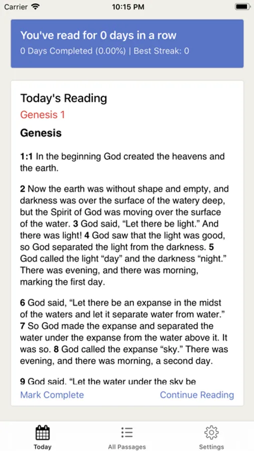 You can read the Bible text in the app, or passages can open in the YouVersion Bible app or NET Bible app.
