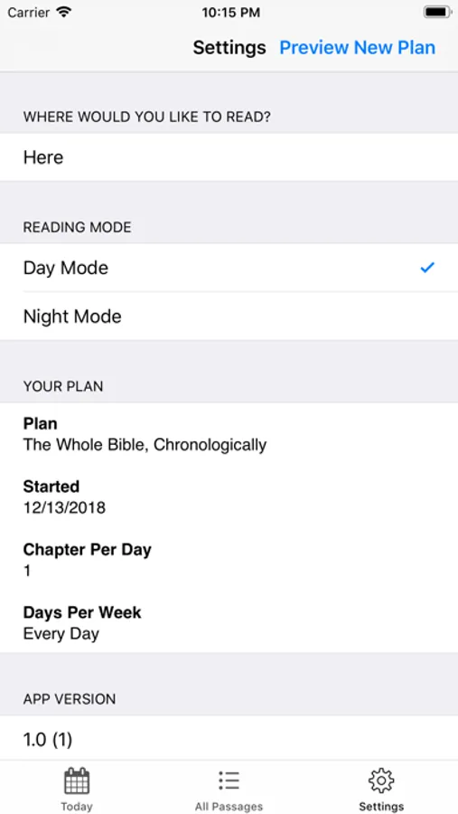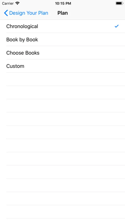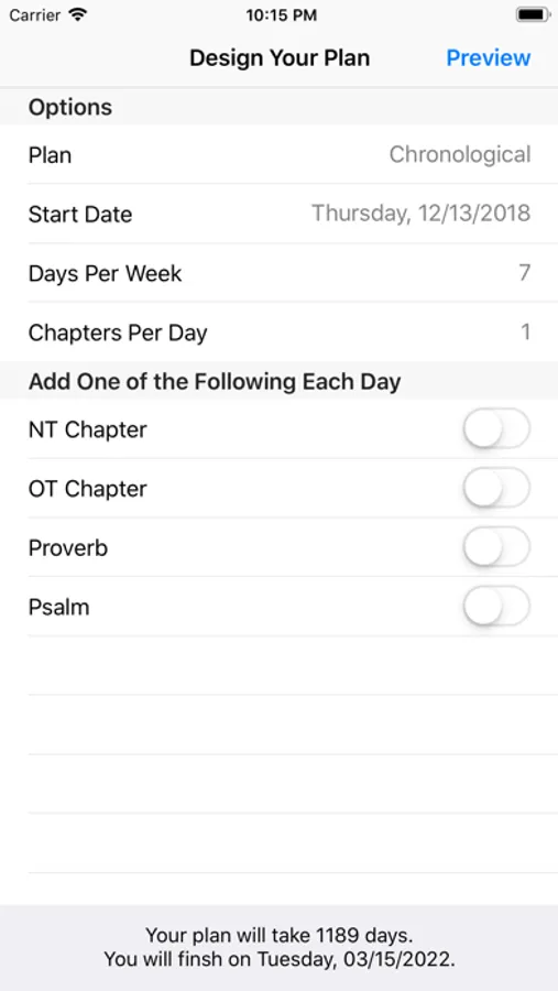 Choose the days of the week you wish to read on and how many chapters you'd like to read each day.