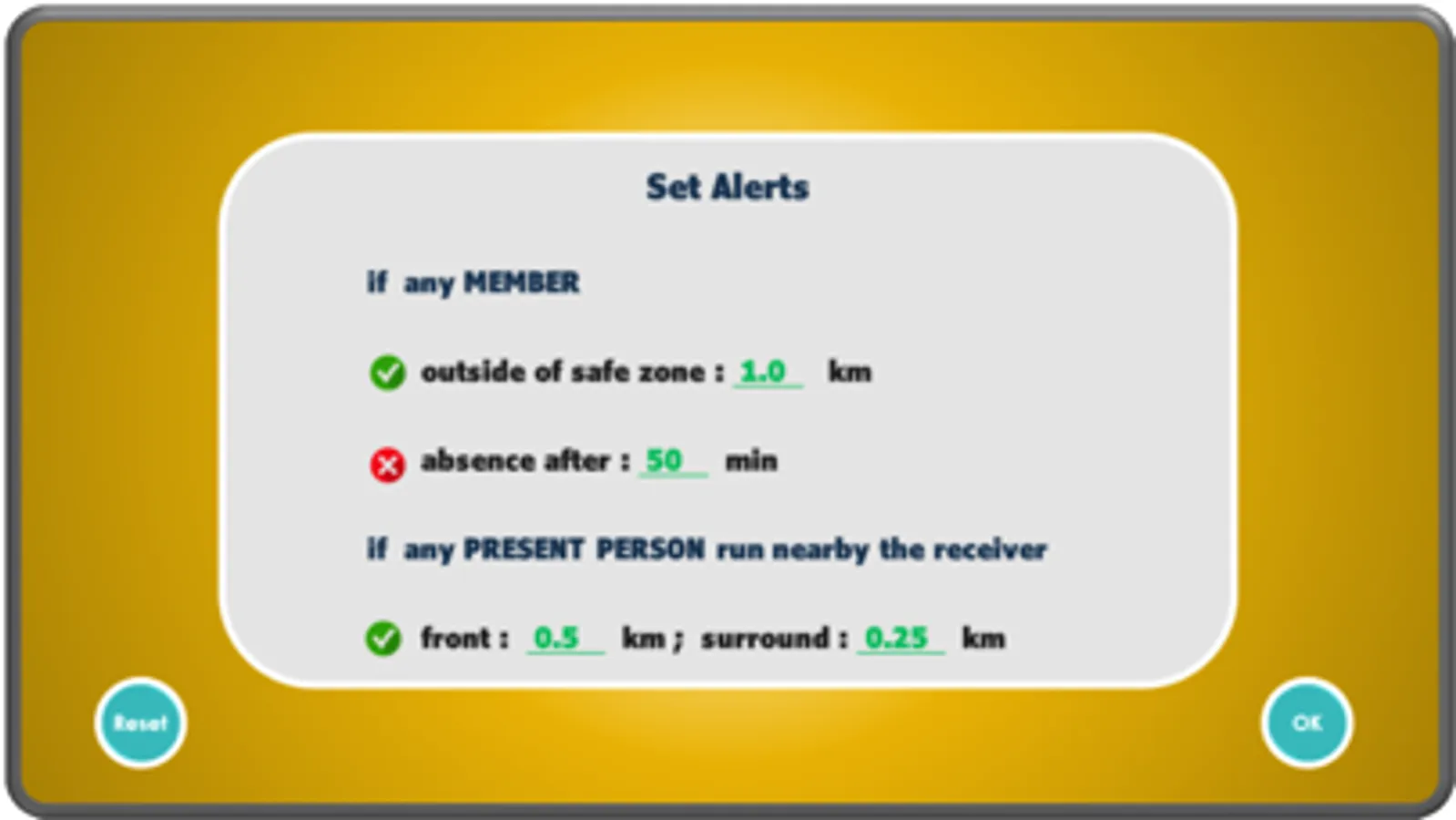 All transmitters within the effective range can be monitored at the same time, and the GPT app can issue different preventive alarms to avoid occurrences of danger and/or to improve the efficiency of the rescue.