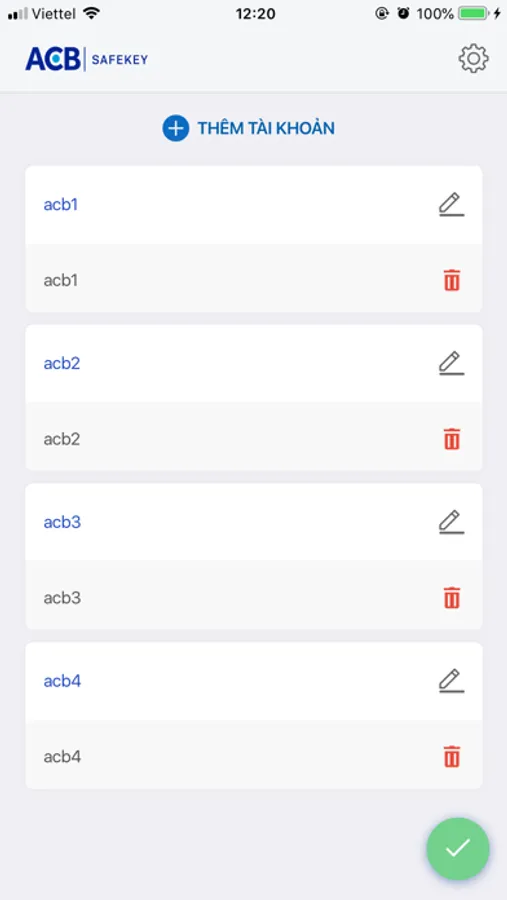 Ứng dụng sinh OTP để xác thực giao dịch của ngân hàng TMCP Á Châu (ACB).