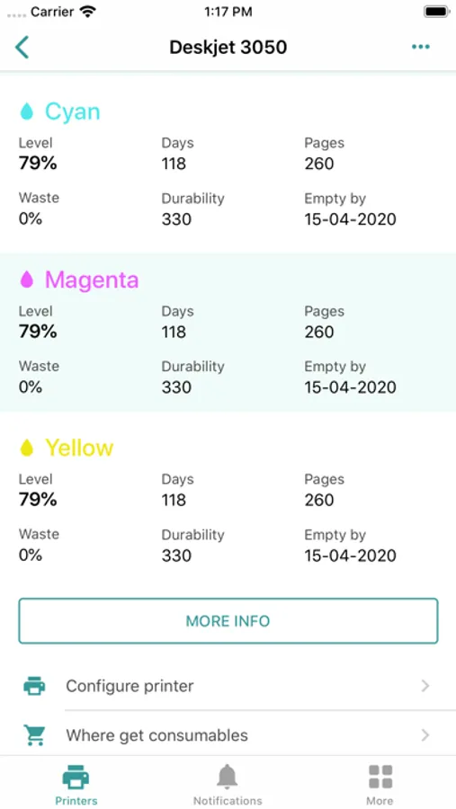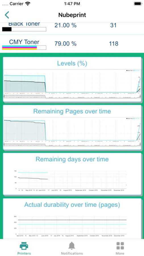 Know the performance of each one of your equipments. How many days of consumables are left, how many pages and how each consumable is performing.