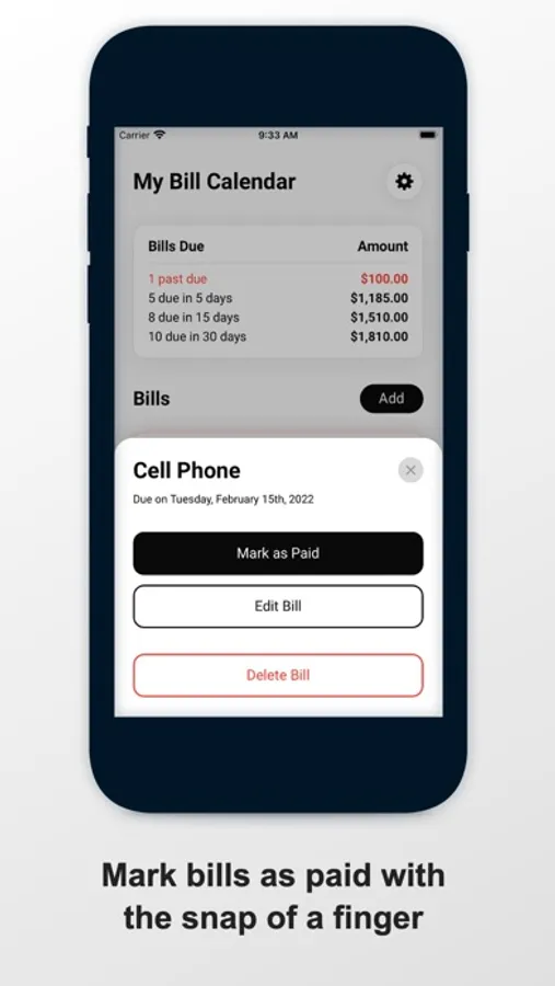 My Bill Calendar lets you track and manage all your recurring household bills in a simple, user-friendly interface. Unlike other bill tracking software, My Bill Calendar does not require any type of account linking. My Bill Calendar utilizes push notifications to let you know when bills are coming up and when they are due. Always know when your next payment hits while keeping your banking info private with My Bill Calendar.