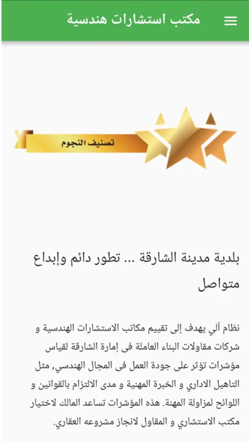 نظام آلي يهدف إلى تقييم مكاتب الاستشارات الهندسية وشركات مقاولات البناء العاملة فى إمارة الشارقة لقياس مؤشرات تؤثر على جودة العمل فى المجال الهندسي, مثل التاهيل الاداري و الخبرة المهنية و مدى الالتزام بالقوانين و اللوائح لمزاولة المهنة. هذه المؤشرات تساعد المالك لاختيار مكتب الاستشاري والمقاول لانجاز مشروعه العقاري.