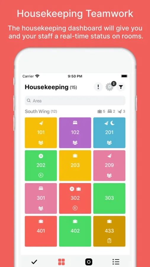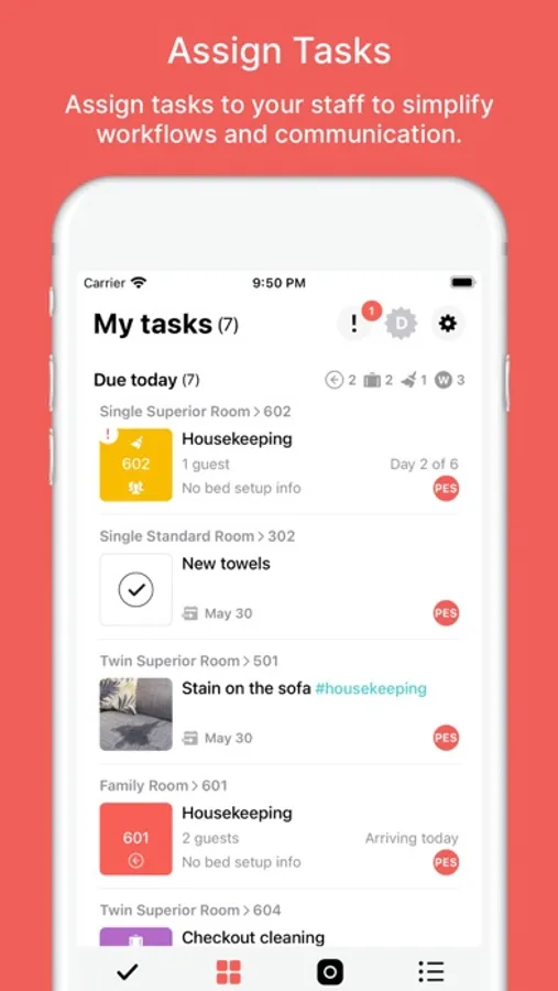 • Connect rules to rooms and spaces. Rules can be: "Change linen on the 4th day of stay", "change tv remote batteries every eight months", "Deep clean stairway every week", etc.