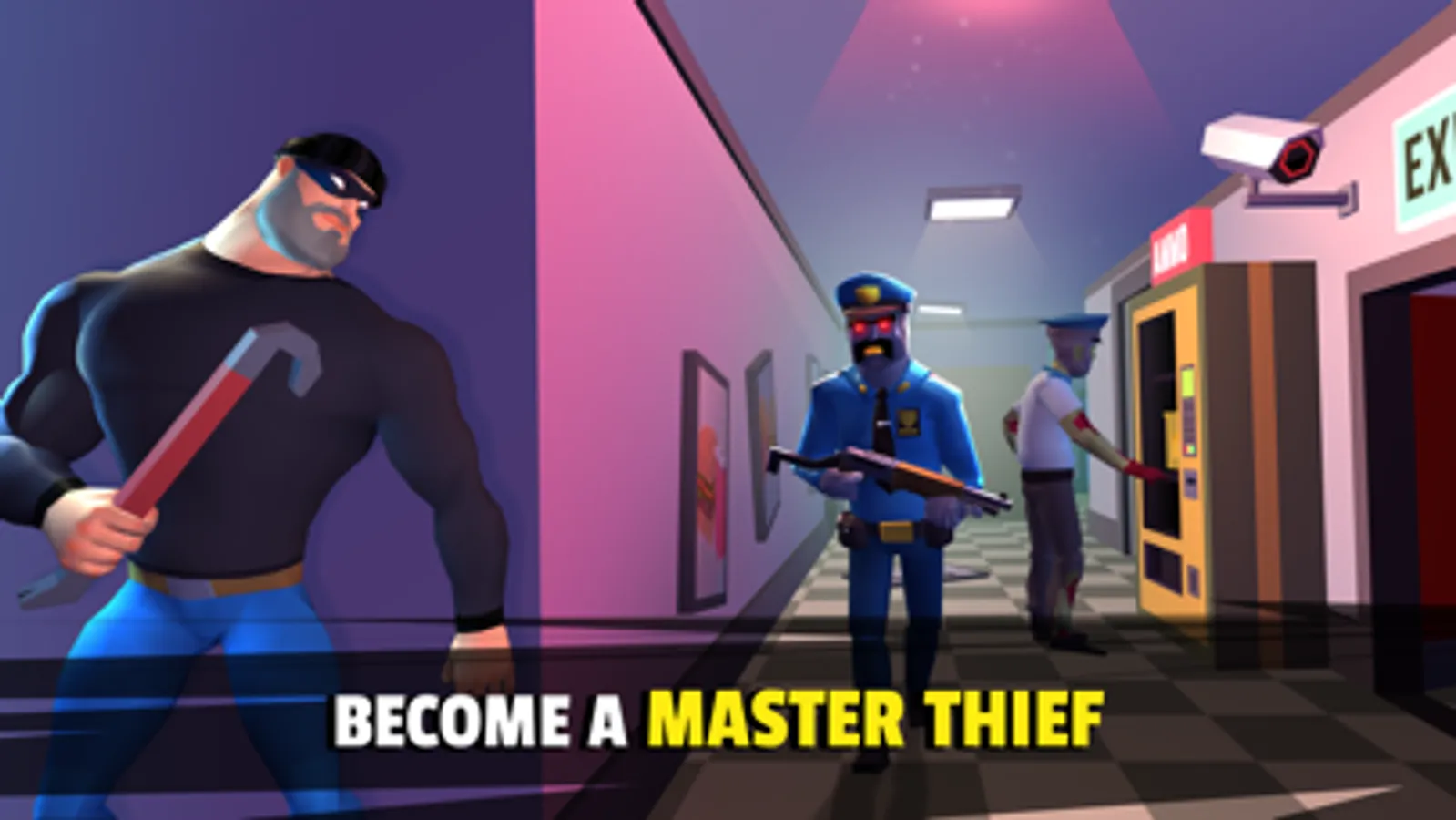 Robbery Madness is a FPS (First Person Shooter) heist and thief simulator game focused on action and stealth with RPG elements, With tons of funny elements and an amazing cartoon low poly graphics.