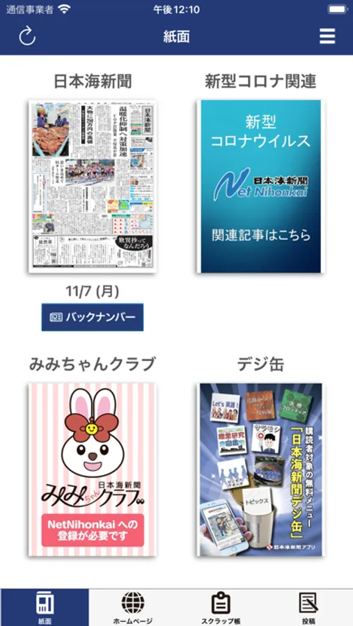 号外やうさぎの耳などのフリーペーパーも掲載!日本海クラブを便利に使える機能も。