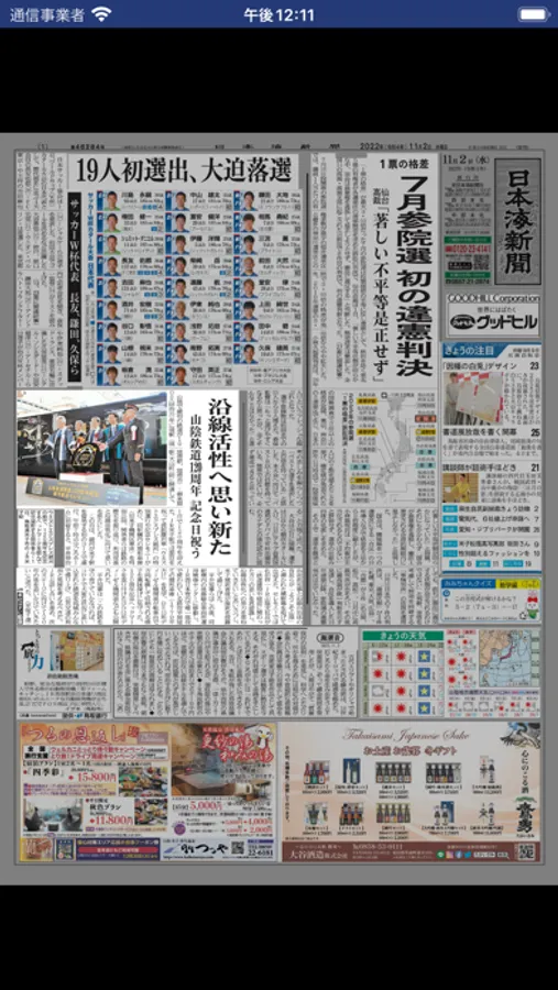 ・紙面のデータを事前にダウンロードすることで、通信環境がない場所でも紙面をご覧になれます。