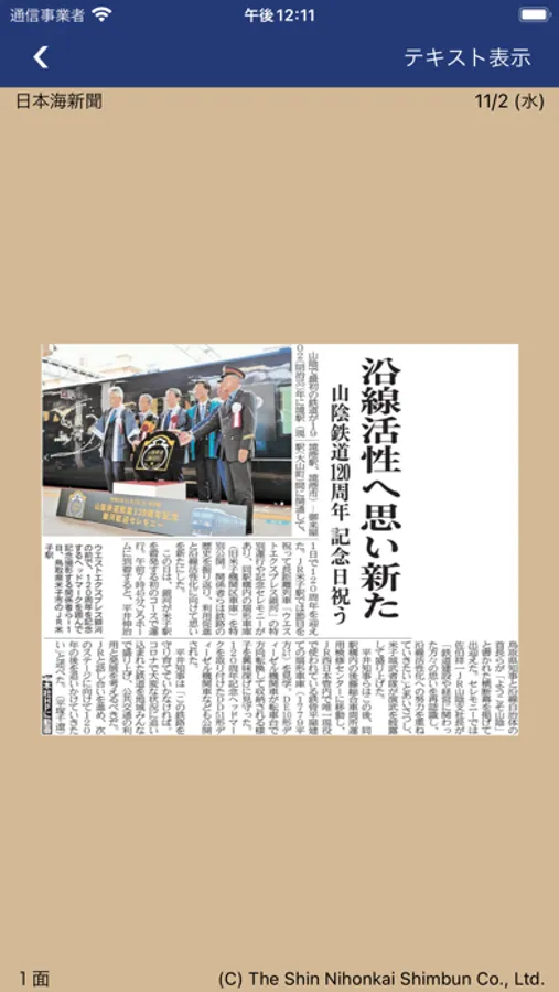 ・新聞の縦書き文字を、端末で読みやすい横書きに表示するテキスト表示機能を搭載。