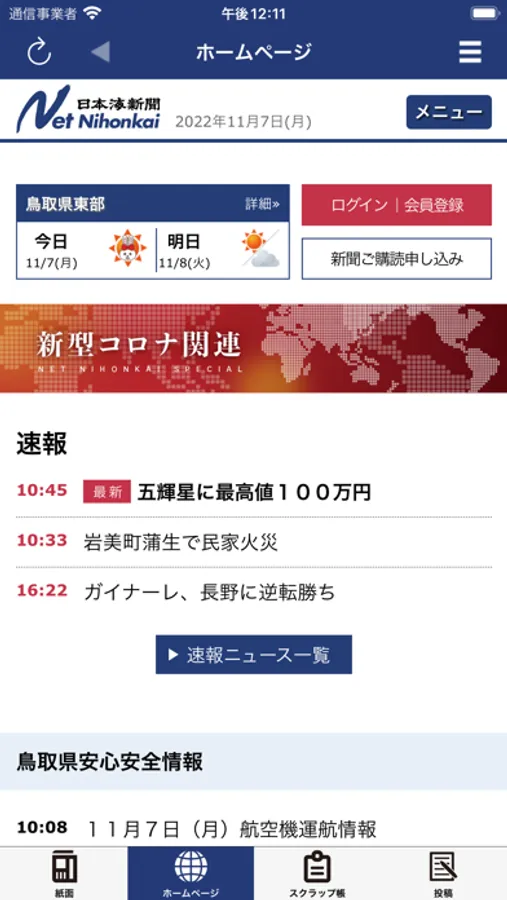 ※本アプリからは日本海新聞の購読申し込みやNetNihonkaiの会員登録をすることはできません。