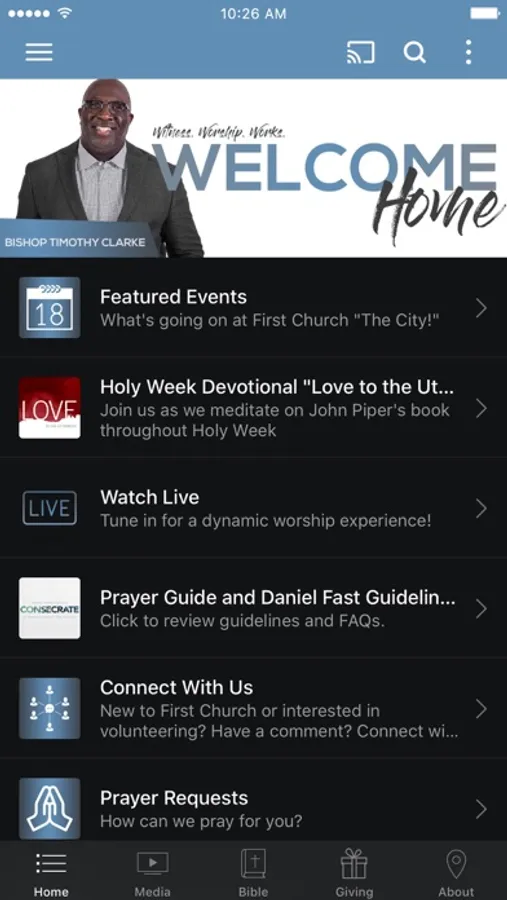 This app is packed with powerful content from Bishop Timothy J. Clarke and resources to help you grow and stay connected with First Church "The City".