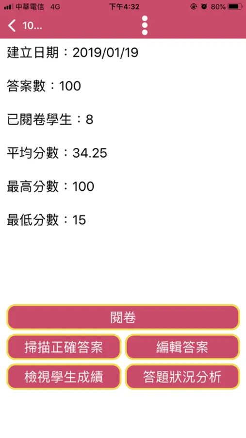 試卷、個人和班級皆可顯示成績統計,另支援答題分析、錯題分析等, OneGrade 提供多種圖表,一鍵匯出,閱卷、分析超 EASY。