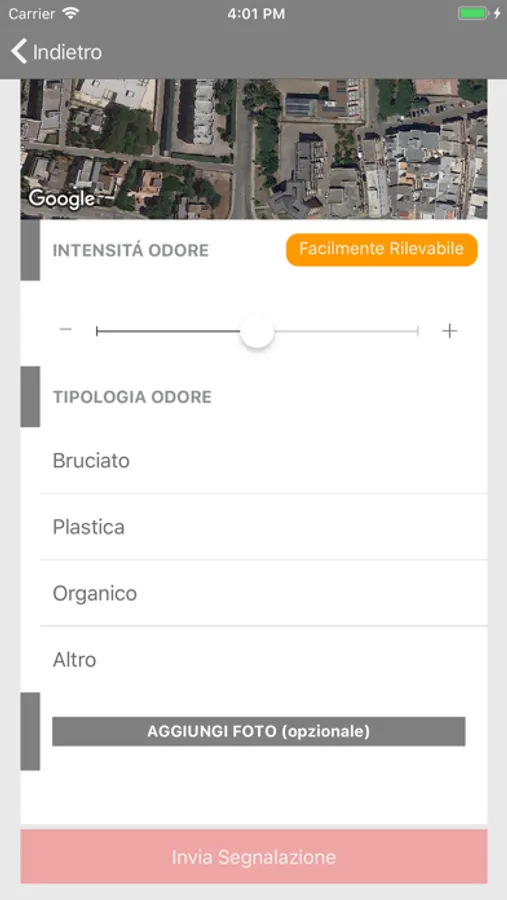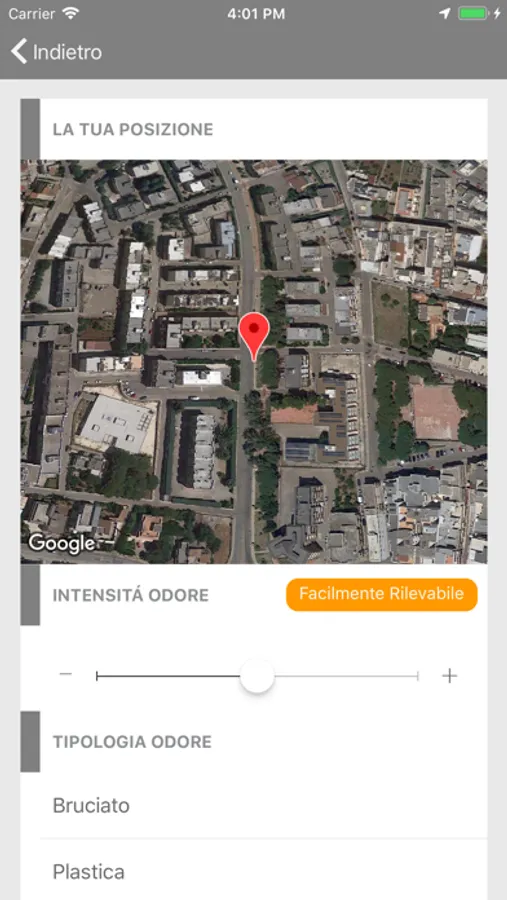 Se avverti la presenza di odori molesti, utilizza SEGNALAPP-ODORI per effettuare una segnalazione all’Amministrazione Comunale: potrai indicare l’intensità e descrivere la percezione degli odori. L’App registrerà automaticamente il luogo e l’ora della segnalazione.