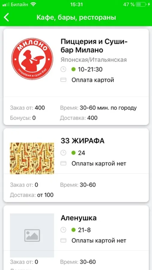Мобильное приложение для заказа еды и других услуг из ресторанов города Сыктывкара.
