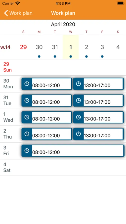 Det finns också möjlighet att via appen ansöka om ledighet samt anmäla frånvaro. Dessa händelser presenteras även i vyn Arbetsplan.